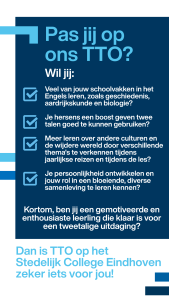 Waarom kiezen voor TTO op het Stedelijk College Eindhoven?